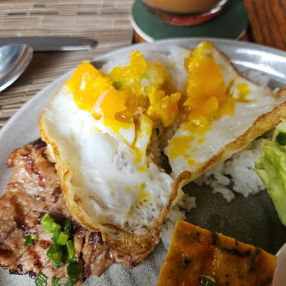 껌땀에도 달걀 프라이가 있었지만, 또 주문했던 단품의 달걀 프라이. 써니 사이드 업으로, 버섯과 함께 주문했다.