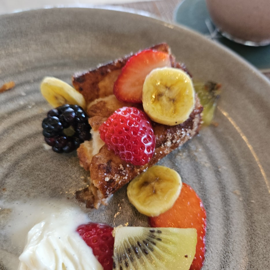 과일의 신선함이 더해진 달콤한 토스트는 그저 극락이다. 달걀을 머금었기에 부드러운 식감에 빠져들었던 기억이다. 두 번 먹었어야 했는데... 아쉬움이 남는 메뉴.