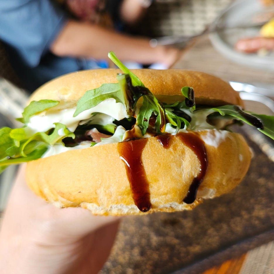 다른 후기에서 너무 맛있었다는 리뷰를 보고, 꼭 주문해야겠다고 생각했던 메뉴다. 베이글 빵 위에 햄과 채소가 올라가 있고, 소스로 마무리.