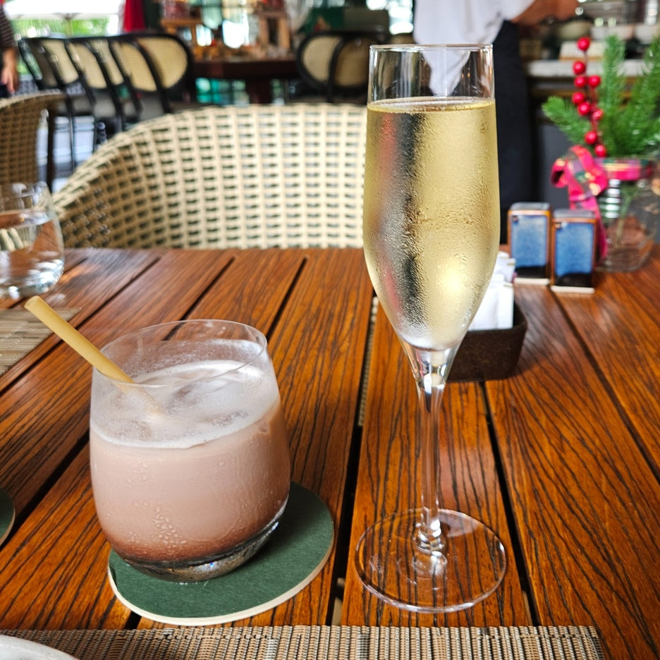 어린이 음료와 어른의 음료. 그런데 둘 다 내가 마신 것. 아침부터 마시는 스파클링 와인은 알코올의 맛으로 처음에는 정신을 번쩍 들게 해주었다가, 결국은 알딸딸하게 만들어준다.