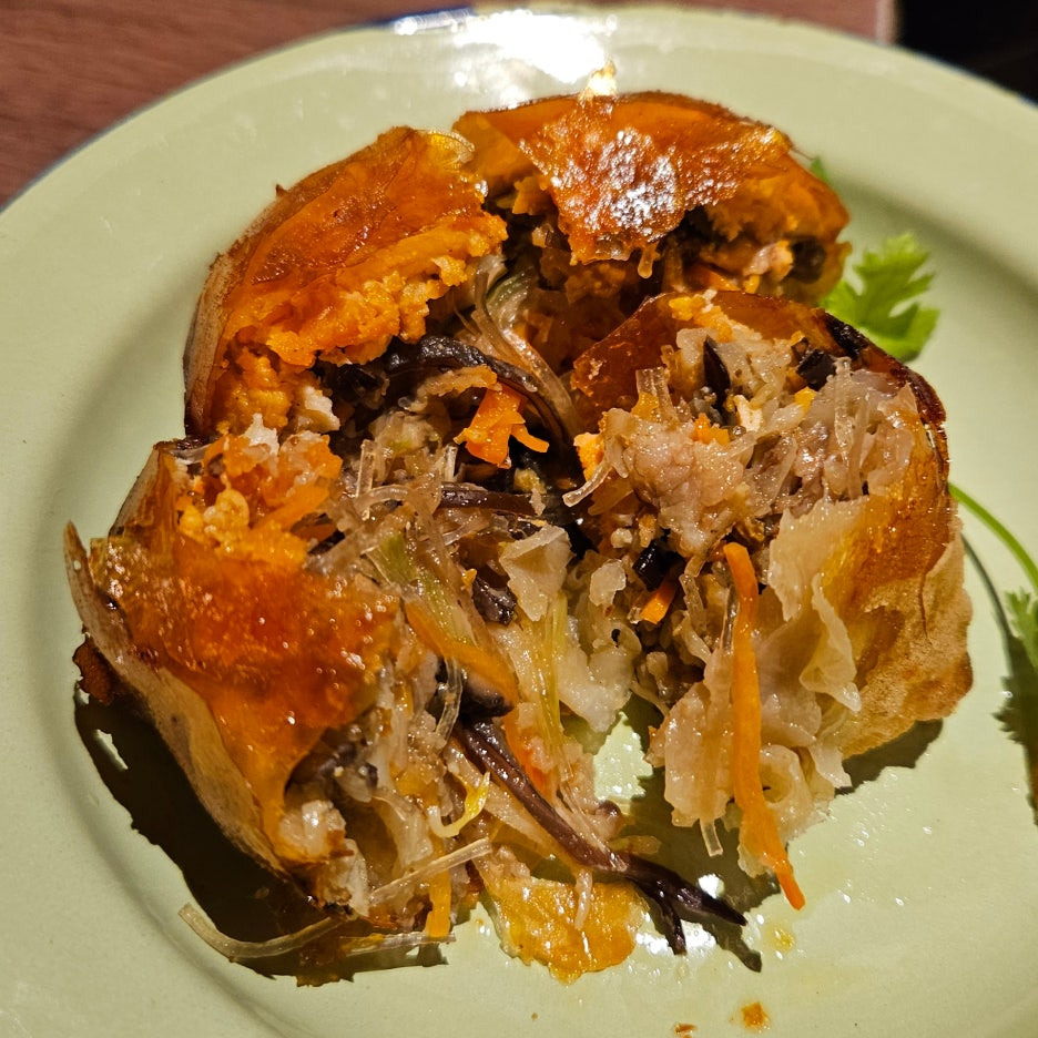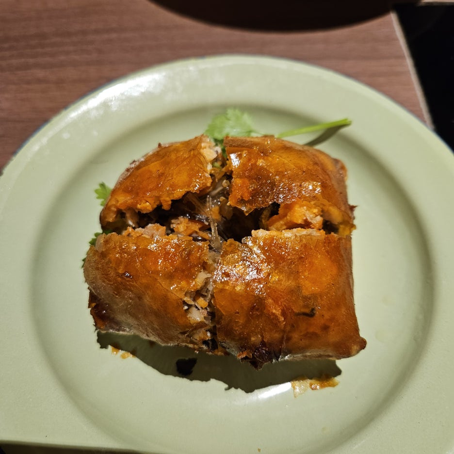 아주 바삭한 껍질 안에 엄청 다양한 재료들이 완전히 꽉꽉 차있었다. 당면, 버섯, 채소, 고기도 보인다. 그런데 막상 게살은 있는지 없는지 잘 모르겠던.