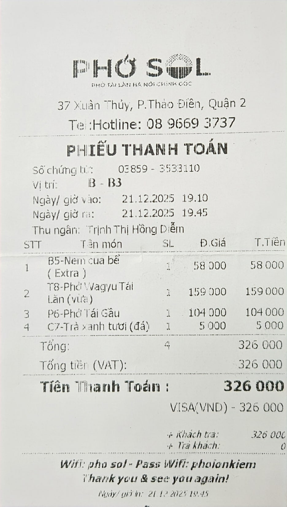 호치민 시내에 6개 정도의 매장을 가진 체인 같은 곳으로, 호치민에서는 특이하게 하노이식 쌀국수를 먹을 수 있는 곳이라고 한다. 진한 국물 맛이 한국인에게 딱 맞는 느낌이라고.