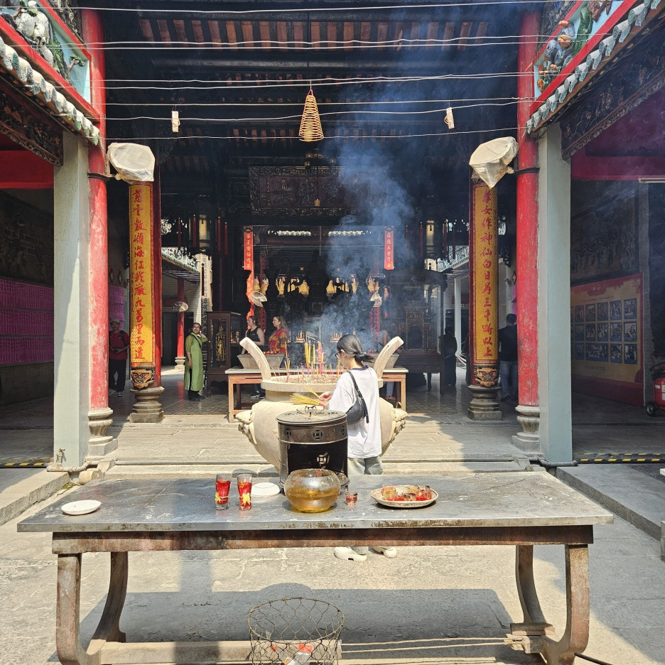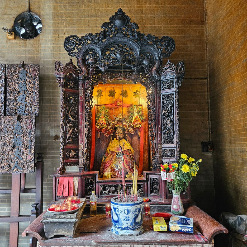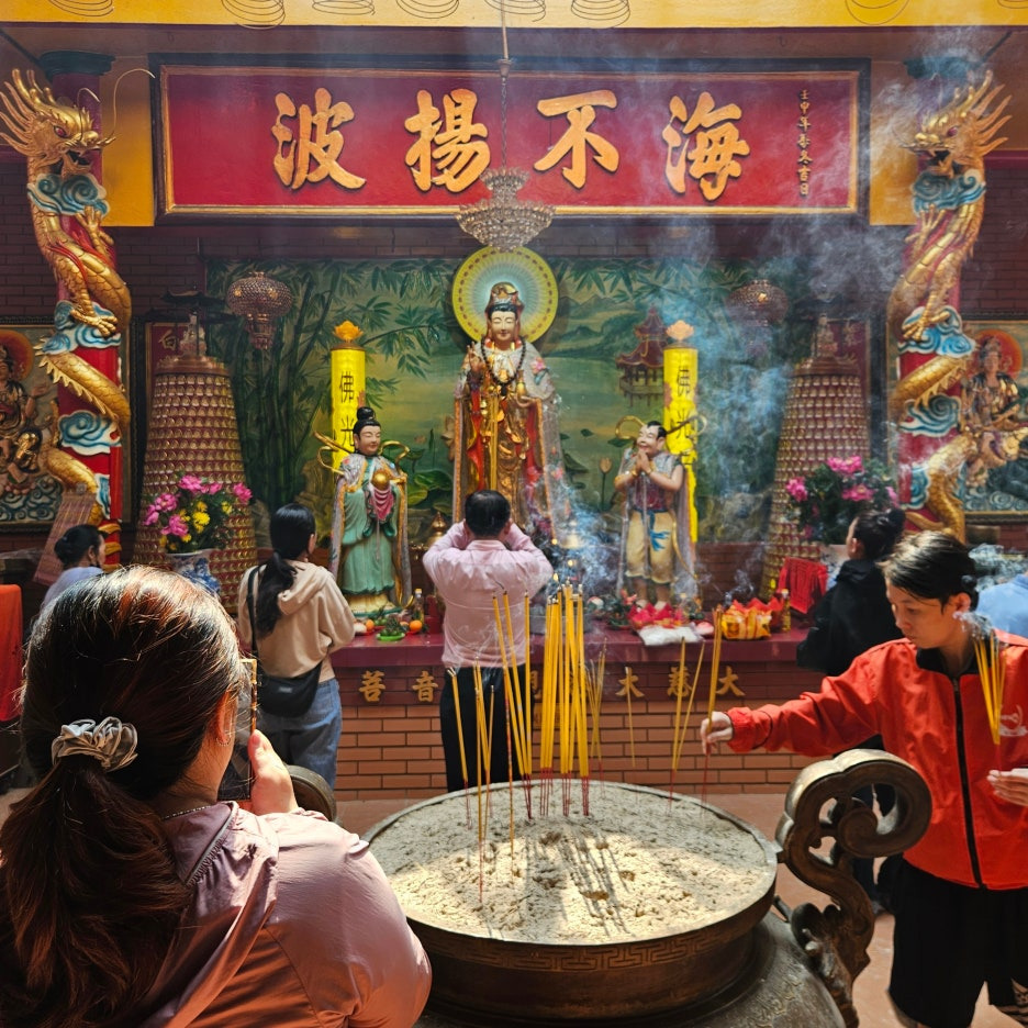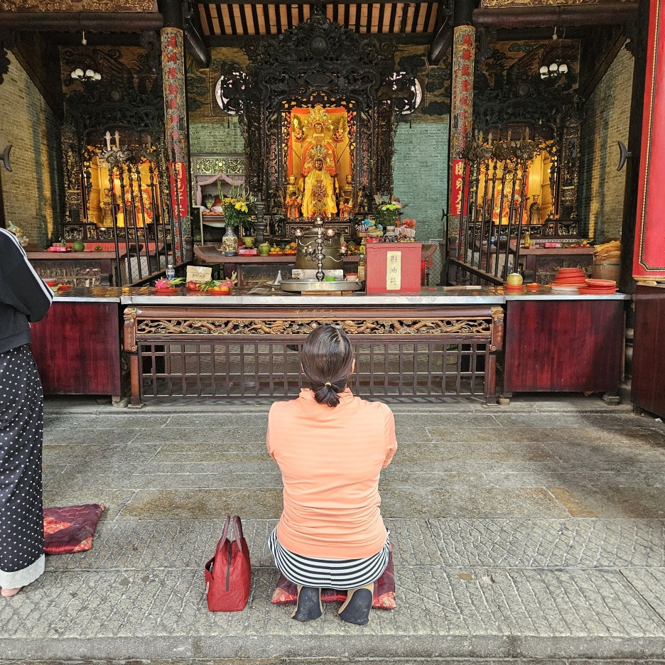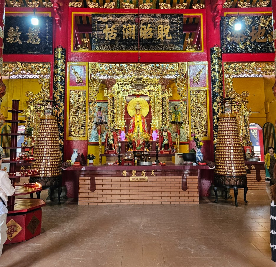 아마도 이분이 제대로 이 사원의 주인인 바다의 여신인가 보다. 가장 중앙에 위치하고 있었고, 평일 오전임에도 많은 현지인분들이 기도를 하고 있었다. 여 여신님은 송나라 시절의 설화로, 배가 바다에서 조난을 당할 때마다 도움을 준 신이라고 한다. 바다를 건너온 중국 이민자들이 바다를 무사히 건너올 수 있도록 도움을 준 여신에게 감사를 표하기 위해 1760년에 티엔허우 사원을 지었다고 한다.