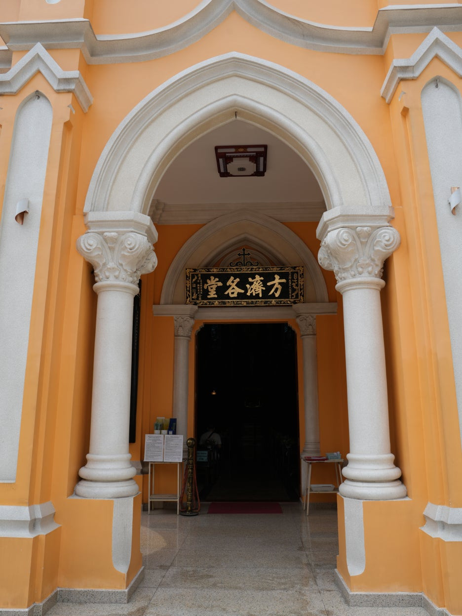 이 건물은 1900에 착공하여 1902년에 완성되었다. 성당의 전체적인 뼈대와 뾰족한 첨탑은 전형적인 고딕 양식을 따르고 있지만, 차이나타운에 위치한 만큼, 성당 입구의 문이나 기둥, 장식 곳곳에 한자가 적혀 있거나 중국식 전통 문양이 섞여 있어 묘한 매력을 준다. 내부는 노란색과 흰색이 어우러져 따뜻하고 화사한 느낌을 주며, 정교한 스테인드글라스가 아름답다.
