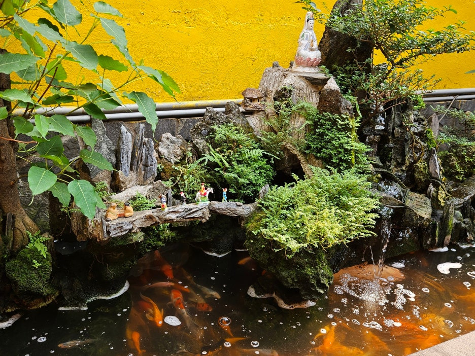사원의 맞은편에는 작은 연못이 있는 곳이 있는데, 여기에서 아주 신기한 장면을 목격했다. 이 연못은 1809년에 조성된 곳으로, 풍수지리적으로 사원의 기운을 조화롭게 하며, 거북이나 물고기를 방생하는 장소로 쓰인다고 한다.