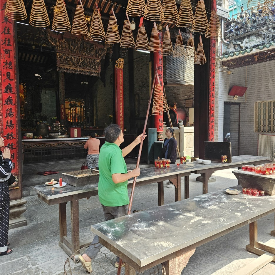 나중에 실제로 이 향을 봉향하는 모습을 보았는데, 돈을 내고 향을 구입을 하면, 어디선가 나타나신 관리자분이 나무 막대기로 천장에 매달아 주셨다.