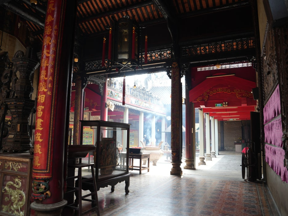 입구 위쪽의 지붕에 있던 조각상들이 아주 정교하다. 우리나라에서는 볼 수 없는 모습에 신기해 보였다. 티엔허우 사원은 1760년에 지어진 중국식 사원으로 다채롭고 화려한 중국 건축의 특징을 볼 수 있었다.