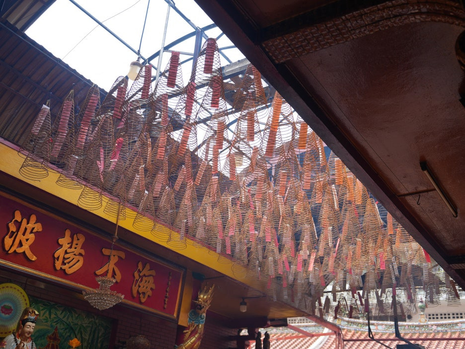 천장에 달려있는 모기향 모양의 향들이 특이하다.