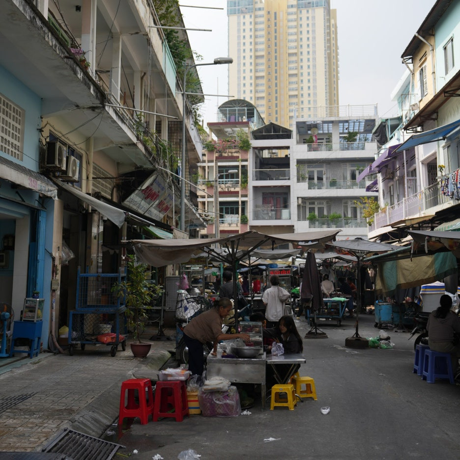 그렇게 우연하게 마주친 풍흥 시장. 완벽하게 현지인들만 있는 시장이다. 식사를 하는 사람과 물건을 사고파는 사람들이 엉켜 분주한 공간이었다. 해산물을 많이 팔고 있어서 그런지, 길바닥에 물이 많이 걷기가 쉽지는 않았던 곳.