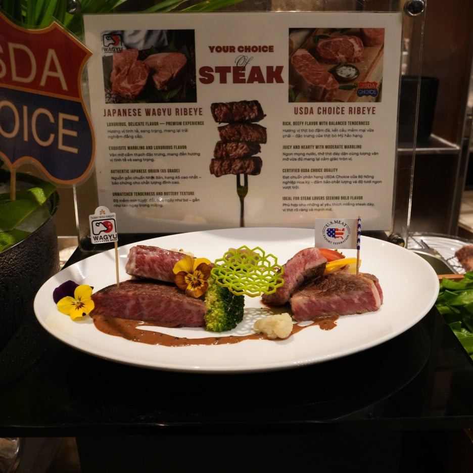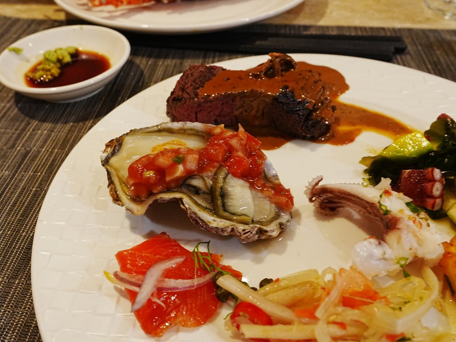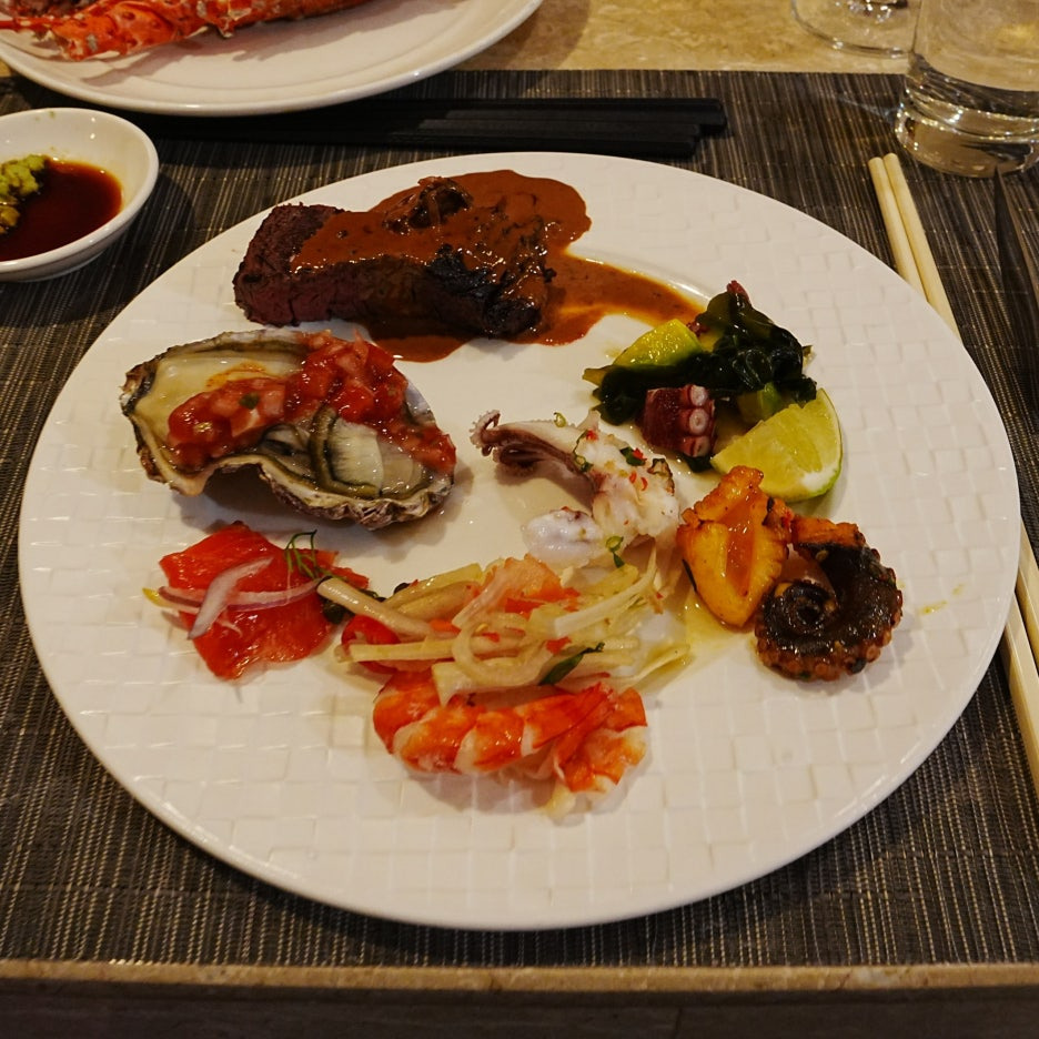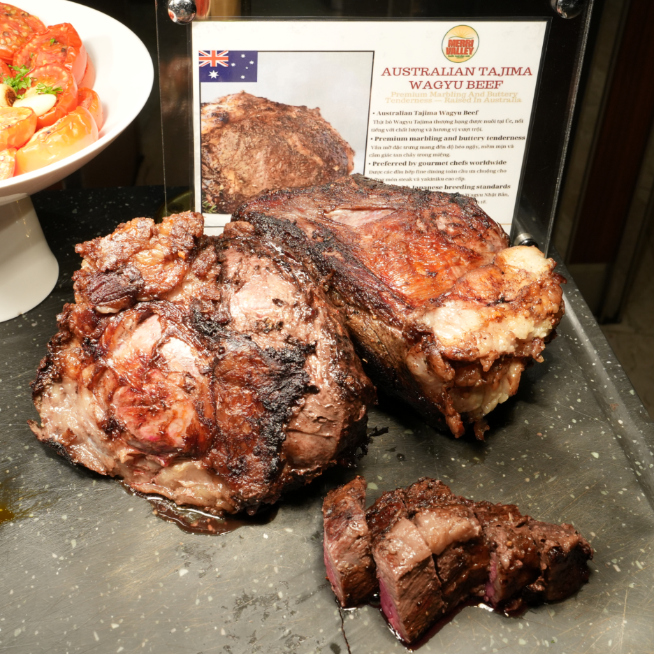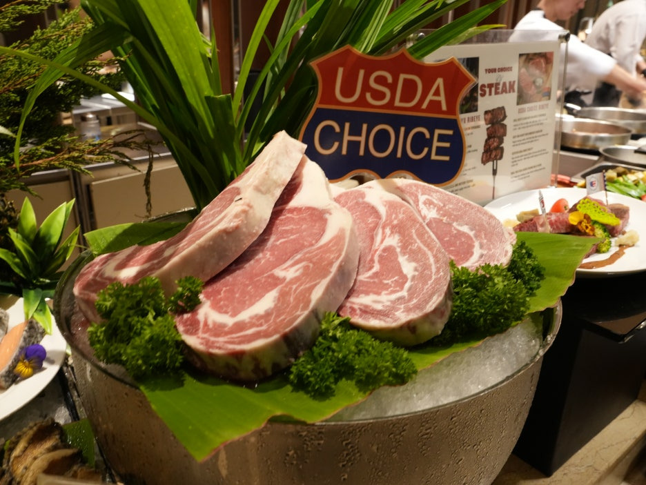 소고기들도 라이브 스테이션에서 구워서 제공해 준다. 먼저 마블링이 엄청났던 와규. 일본계 호텔이라 그런지, 와규 스테이크를 먹을 수 있었다. 맛도 훌륭. 그런데 줄이 상당히 길었다.