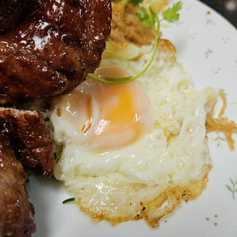 아주 잘 구워진 달걀 프라이. 반숙이라 더욱 좋다. 노른자를 살짝 터트려 밥과 함께 먹으면 최고일 듯.