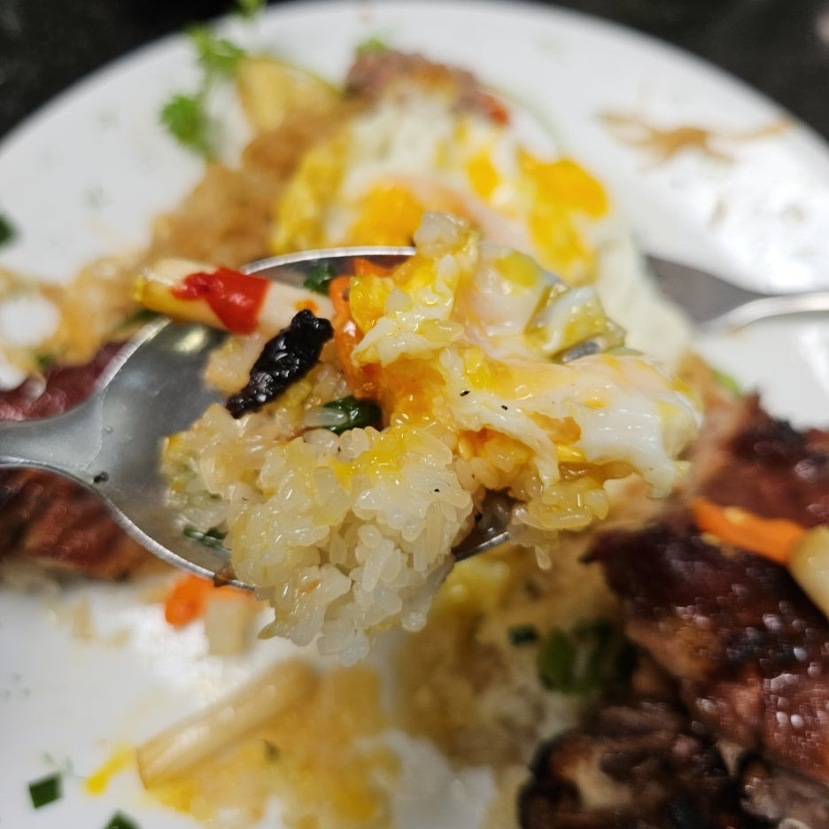 달걀 프라이의 노른자를 잘 터트려, 밥과 함께.