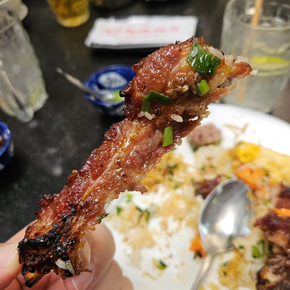 밥은 식감이 독특했다. 정말 뭔가 온전한 쌀을 먹는다는 느낌보다는 고르지 못한 느낌의 찹쌀을 먹는 기분? 돼지갈비의 소스가 적당히 묻어 있어 간간한 양념 밥 같은 맛이 좋았다.