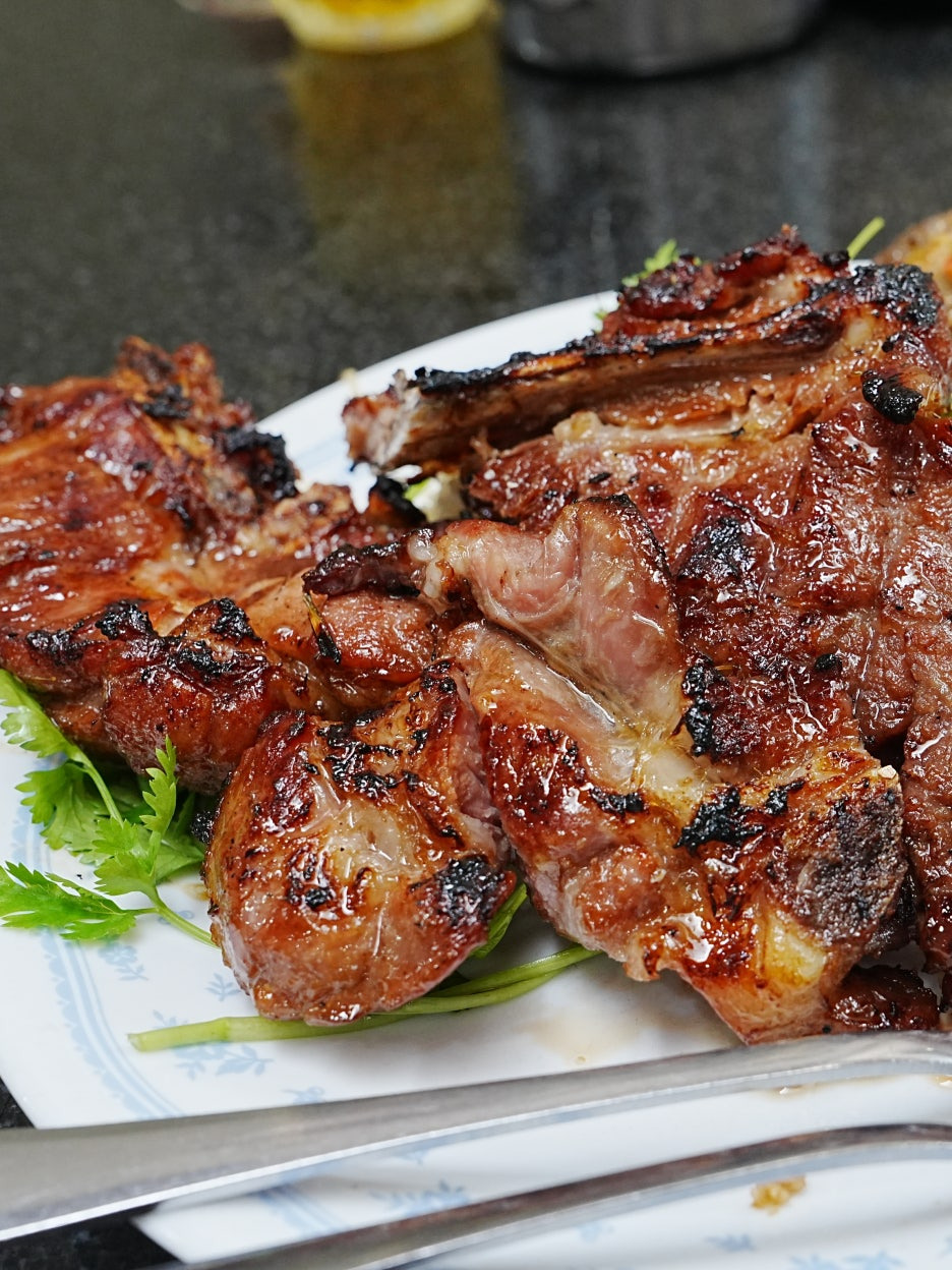 고기의 퀄리티는 아주 좋아 보인다. 두께도 두껍고 윤기도 좔좔 흐른다. 거기에 숯으로 굽고 있으니 아주 기대되는 모습이다. 하지만 연기가 숨을 못 쉴 정도로 심했다.
