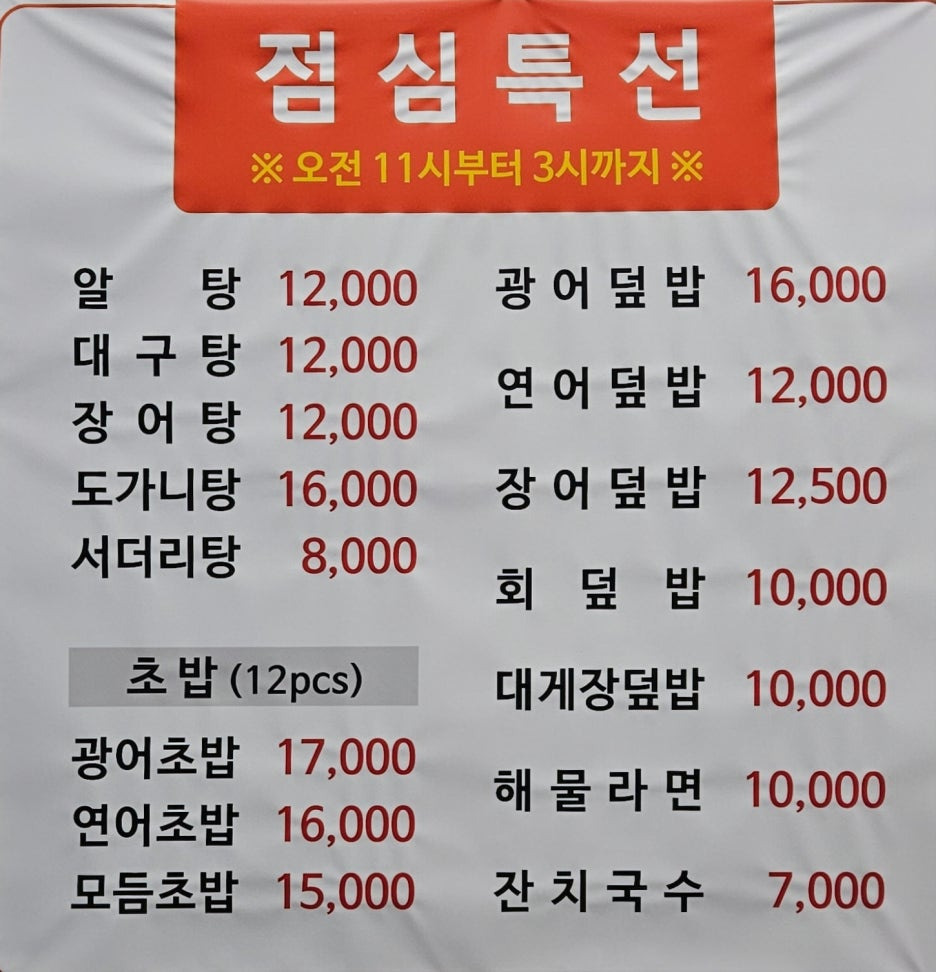 아무래도 동네 장사이다 보니, 점심에는 식사 메뉴도 준비가 되어 있다. 회덮밥이 1만 원 정도니, 주말에 한번 먹어보는 것도 좋을 듯.