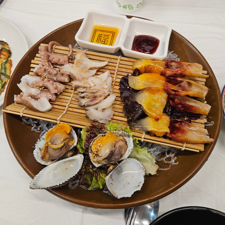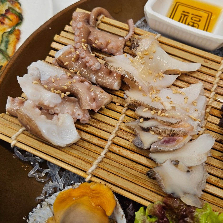 서비스 해산물 모둠. 이거 놀랍다. 이 정도로 많은 양을 서비스로 주실 줄이야. 이것만으로도 이 집을 와야 하는 이유가 될 듯.