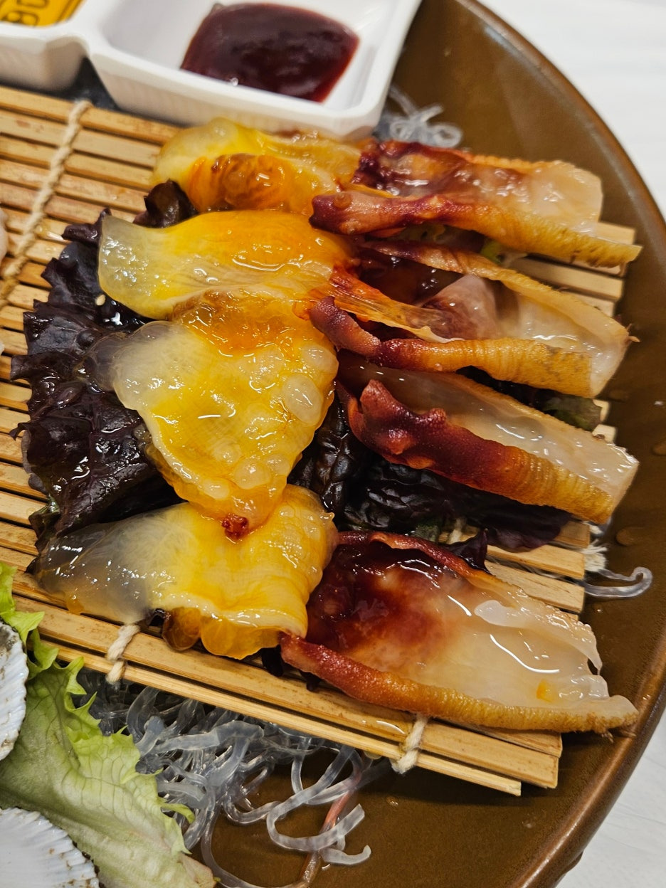 살이 아주 통통하게 올라와 있던 피조개. 정말 꽤 커서 입안에 꽉 차는 느낌.