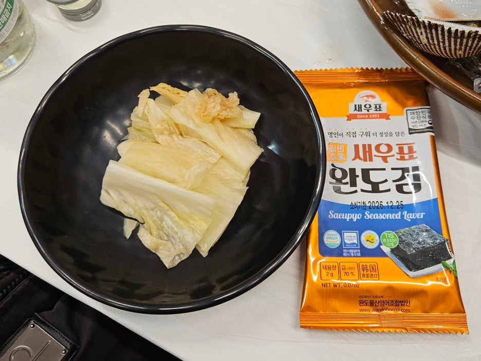회와 함께 먹으라고 주신, 묵은지와 김. 이 씻은 묵은지가 진짜 맛이었다. 몇 번 리필해서 먹었던 기억.