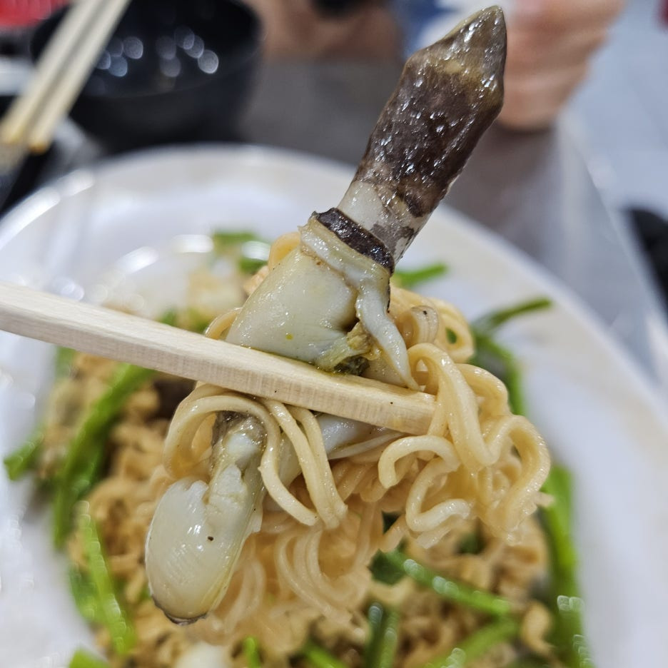 맛조개와 누들. 베트남에서 맛조개를 항상 맛있게 먹었는데, 역시 이곳도 맛있다.