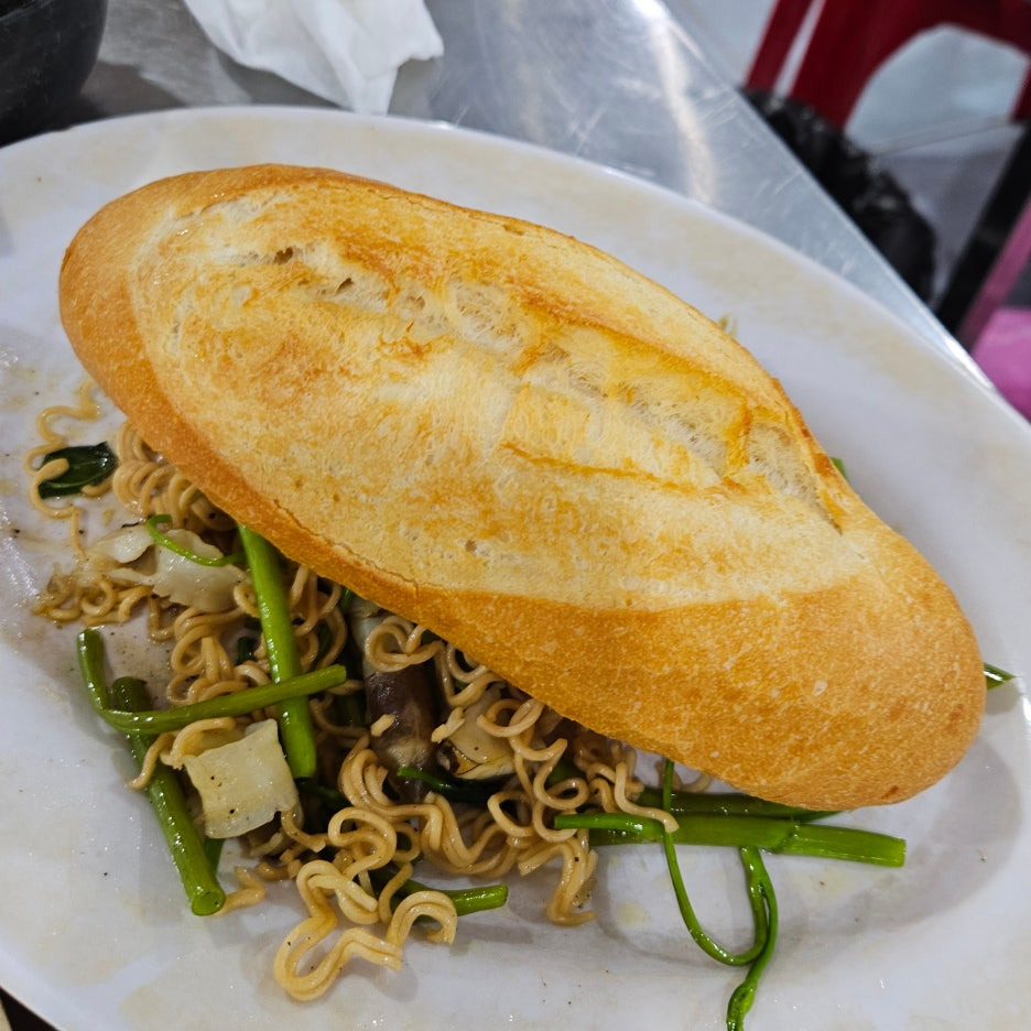 그러던 중 옆 테이블을 보니, 바게트 빵이 올려져 있다. 베트남 반미였다. 조금 기다려 보니, 아주머니께서 테이블 사이로 열심히 반미를 팔고 계셨다. 반미는 가게에서 파는 것은 아니었고, 외부 판매자분이 들어와서 팔고 있는 모습이었다.