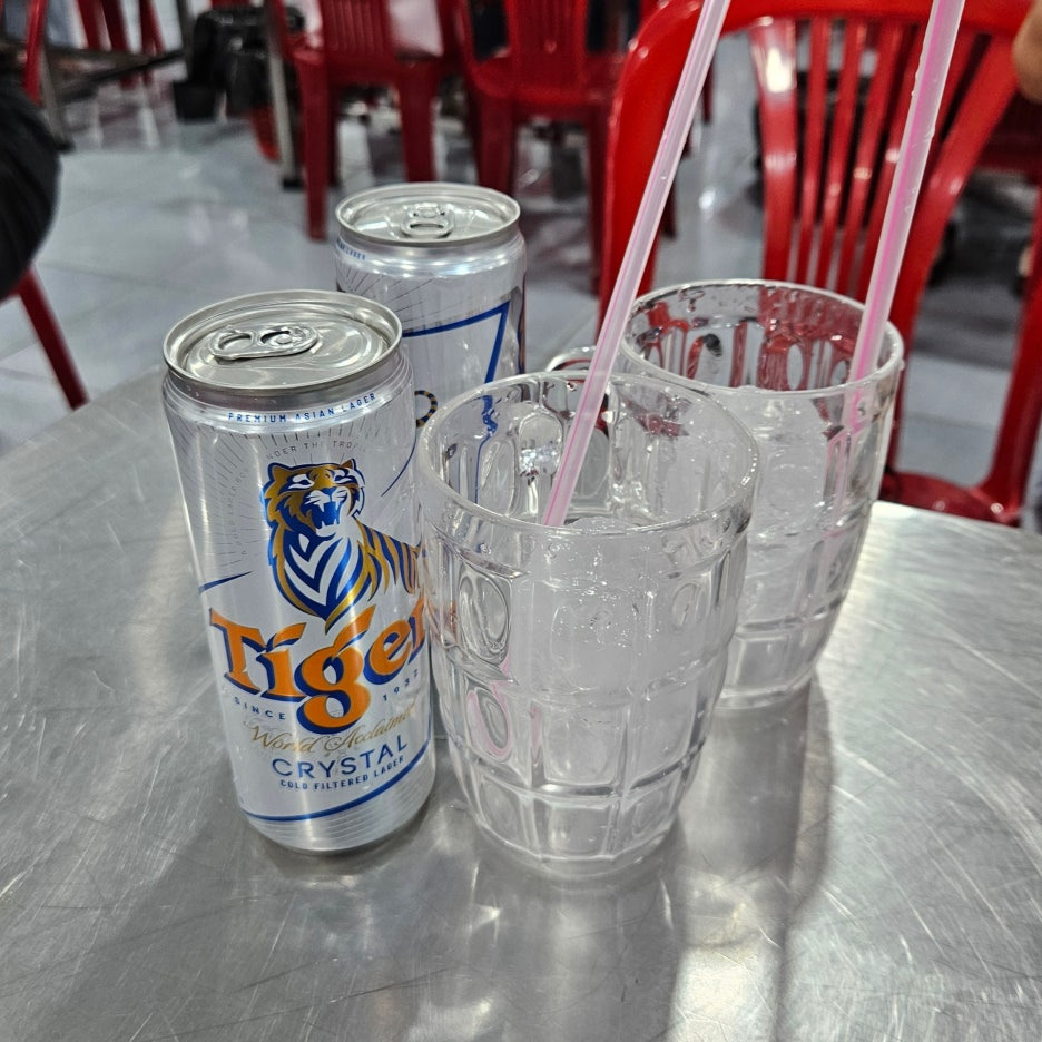 먼저 주문한 맥주. 타이거 크리스털. 얼음을 잔에 담아서 준다. 안타깝게도 나는 이 얼음으로 인해 이후 며칠을 고생하게 된다. 나중에 고생을 하긴 했지만 먹을 때는 아주 좋았던 맥주. 단, 음식에는 전혀 문제가 없었다. 함께한 아내분은 아무런 문제가 없었기 때문. 역시 베트남 같은 경우에는 얼음을 조심해야 한다는 사실을 다시 한번 알 수 있었다.