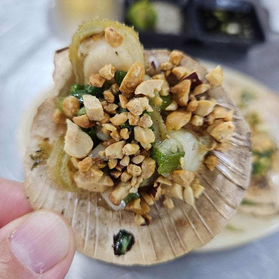 가리비 위에 파와 땅콩 그리고 오일이 살짝 올라가 있는데, 가리비의 크기는 아주 크진 않지만 이 맛이 아주 중독적이다.