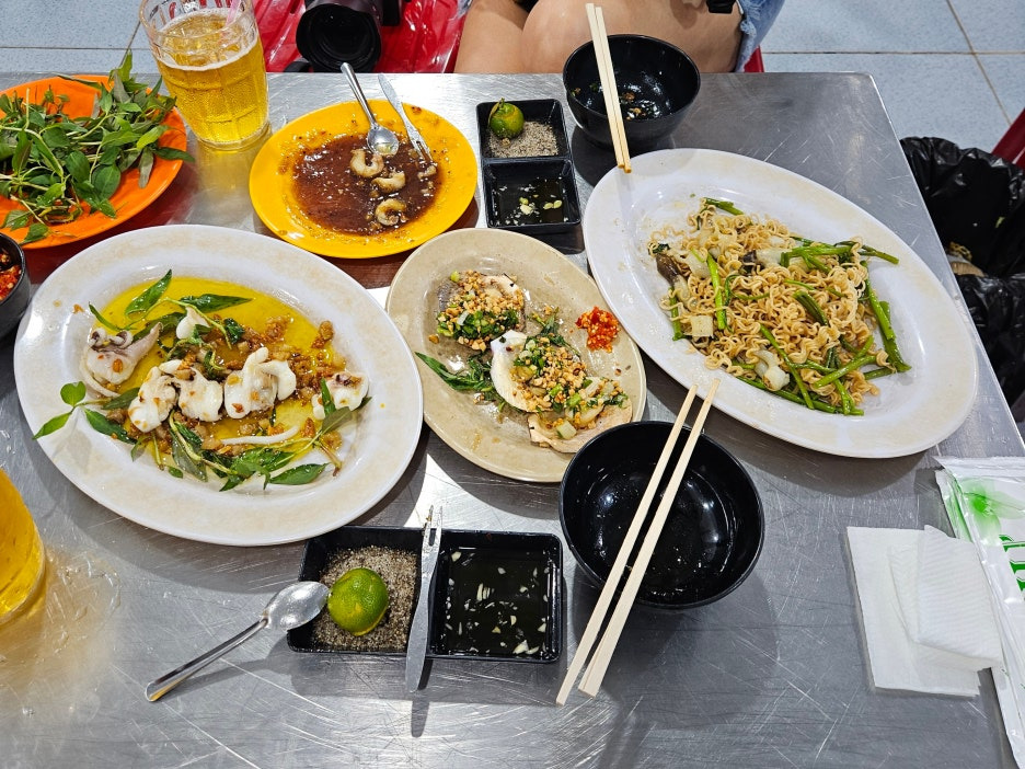 호치민에서 가장 많이 먹는 고둥 같은 녀석들. 호치민에는 "Ốc" 이라고 적혀있는 해산물집들이 많은데, 이 Ốc이 이 고둥을 이야기한다고 한다. 달달한 간장 같은 소스와 함께 삶아져서 나온 것.