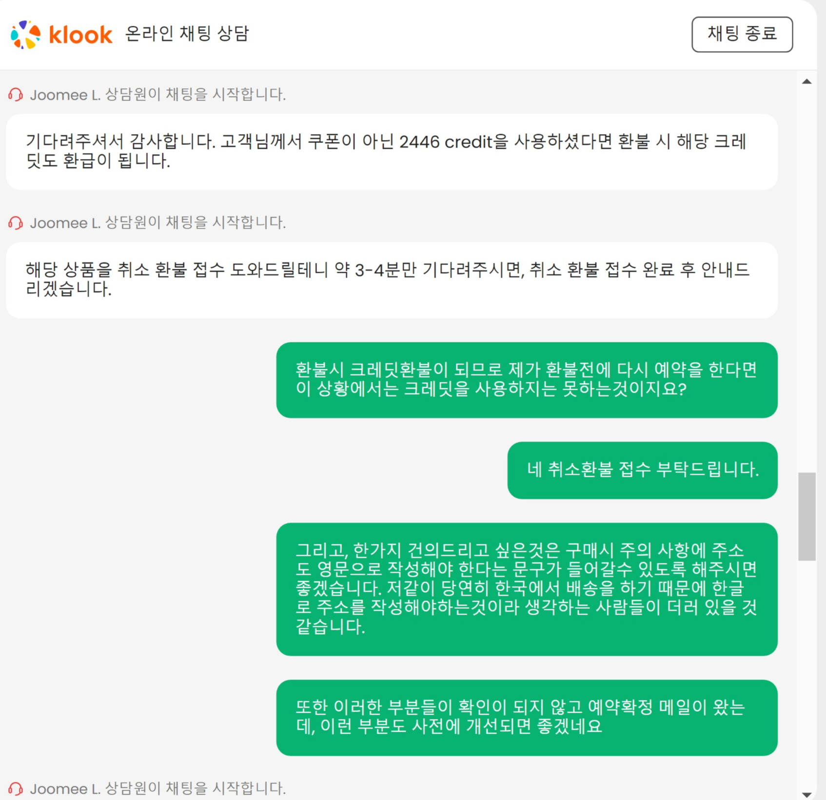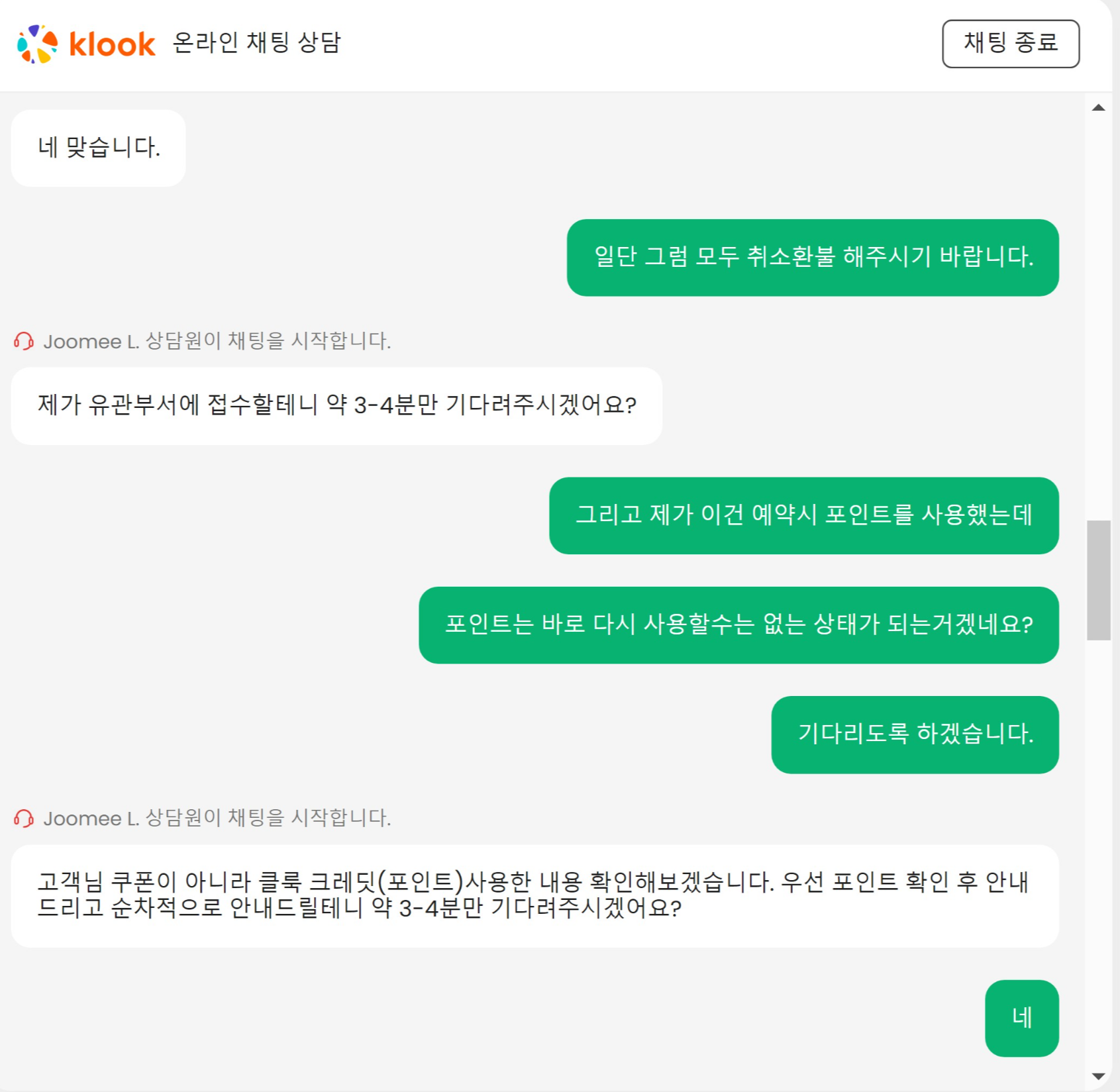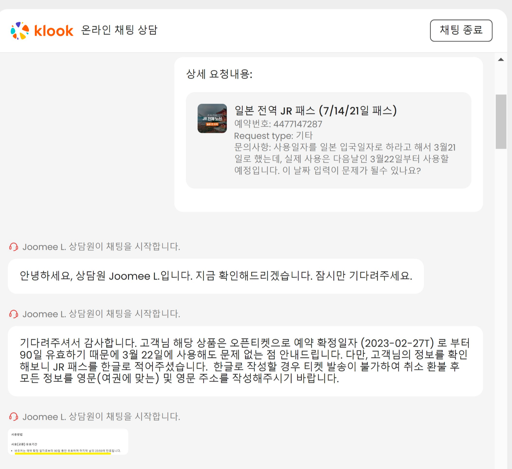 클룩 상담사분의 대처와 친절함은 만족스러웠다.