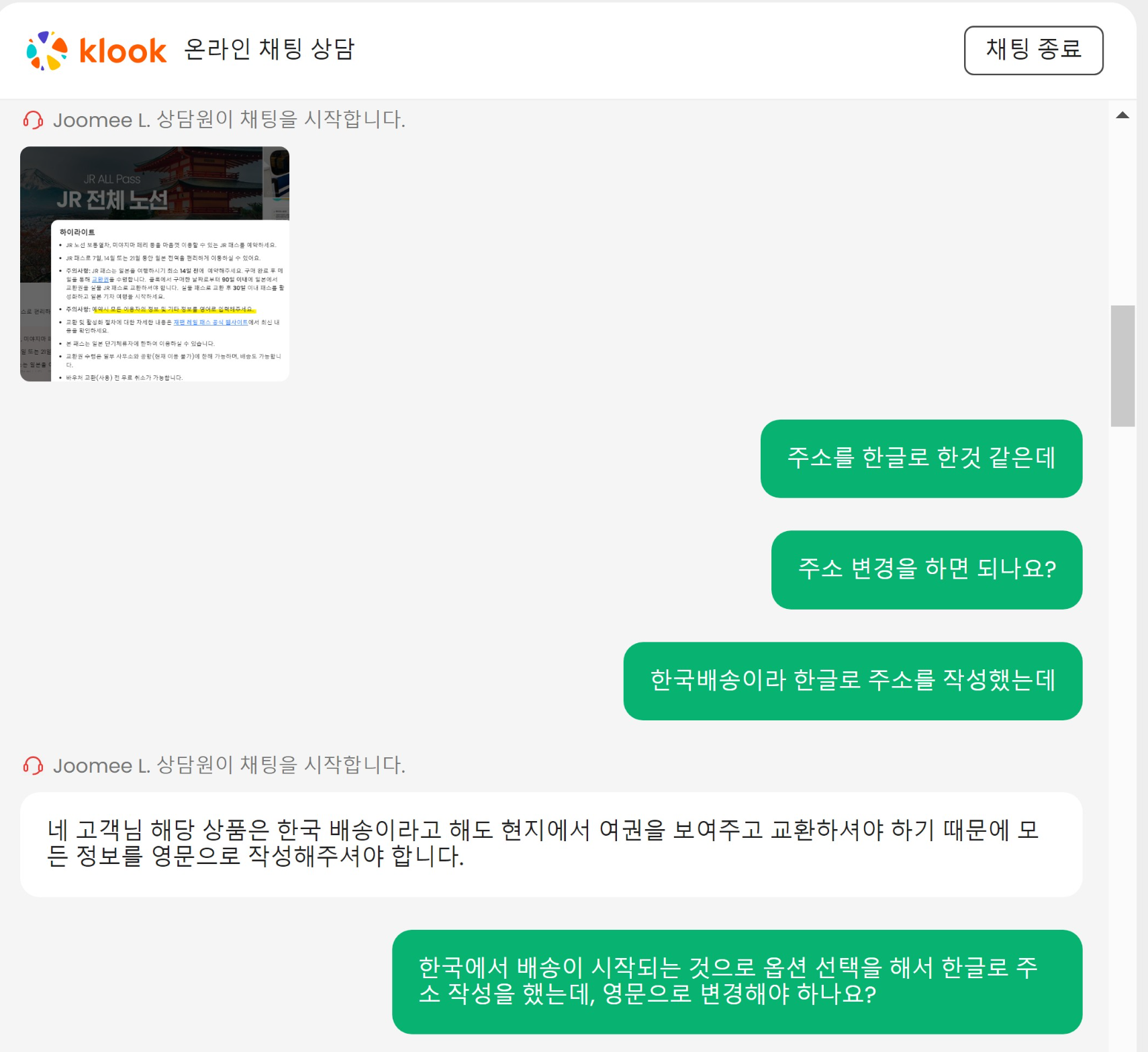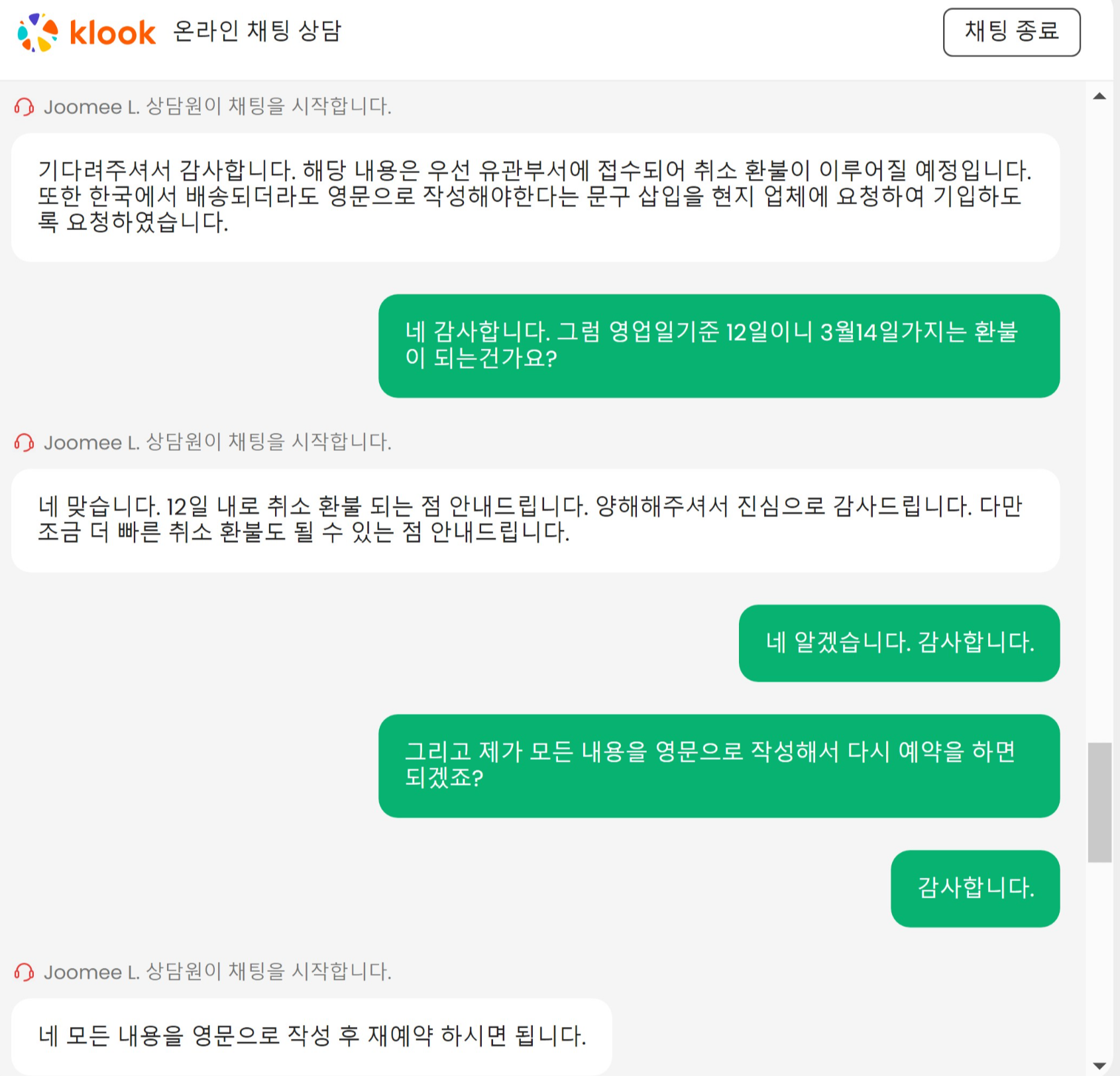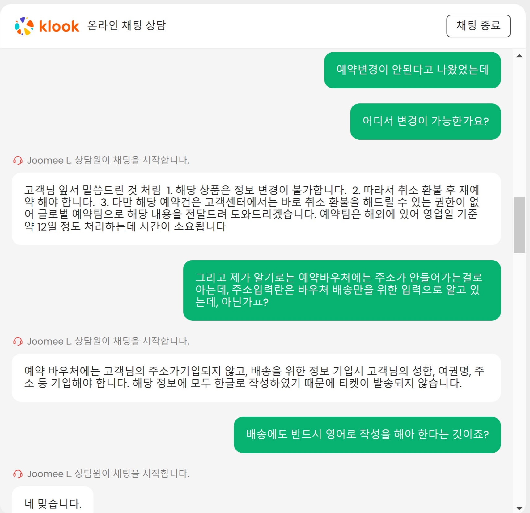 클룩 상담사분의 대처와 친절함은 만족스러웠다.