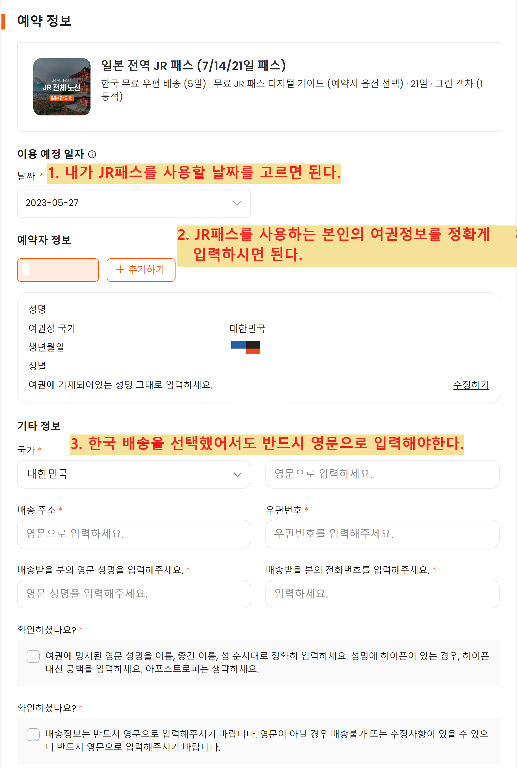 - 실제 JR패스를 사용할 사람의 정보를 넣어야 한다.