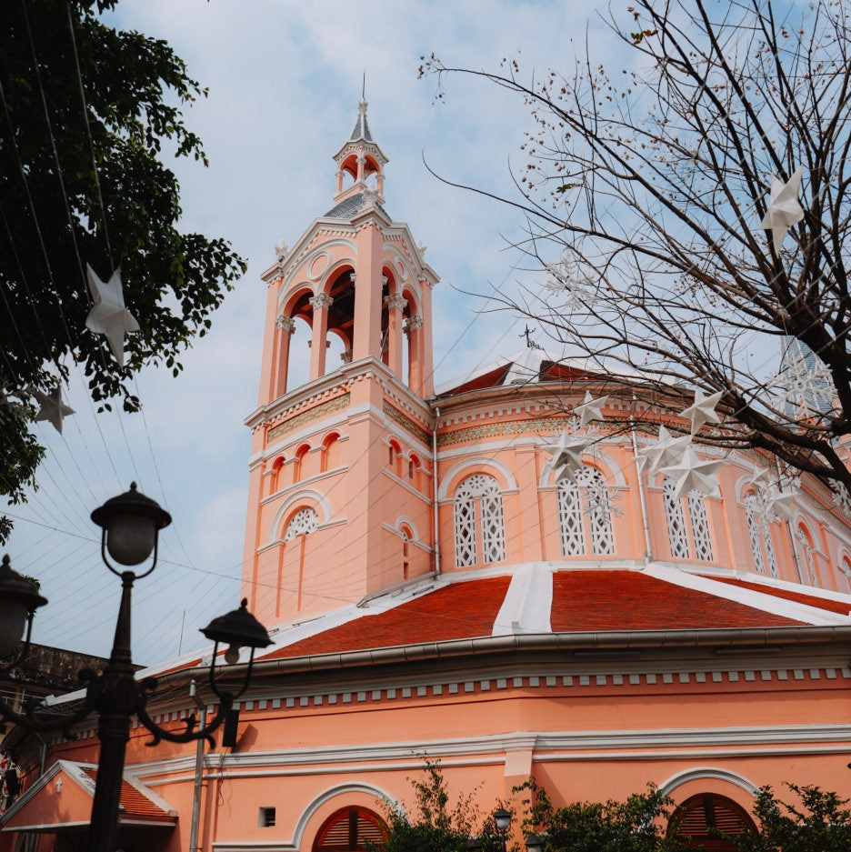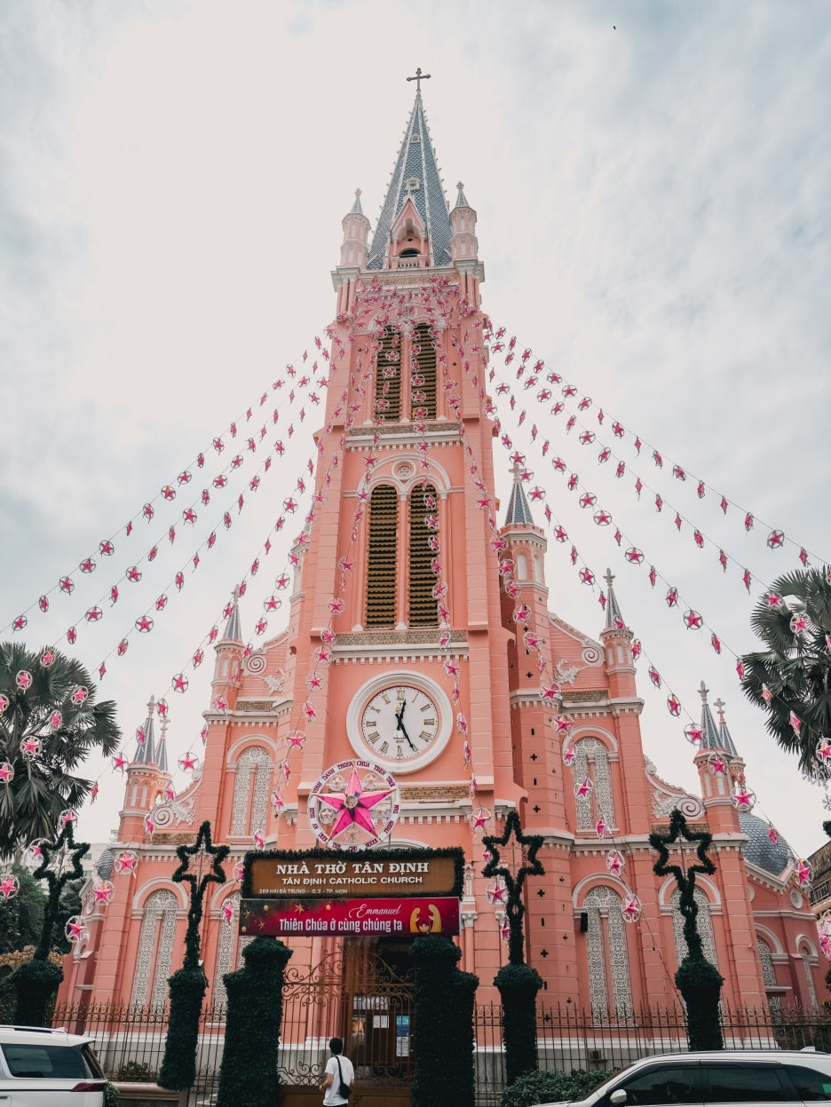 호치민 시 제3구역에 위치한 떤딘 성당은 강렬한 핑크빛 외관 덕분에 '핑크 성당'이라는 별명으로 더 유명하다. 1876년 프랑스 식민지 시절 건설된 이 성당은 고딕 양식과 로마네스크 양식이 절묘하게 조화된 건축물로, 현지인들에게는 신성한 예배의 장소이자 여행객들에게는 최고의 포토 스팟.