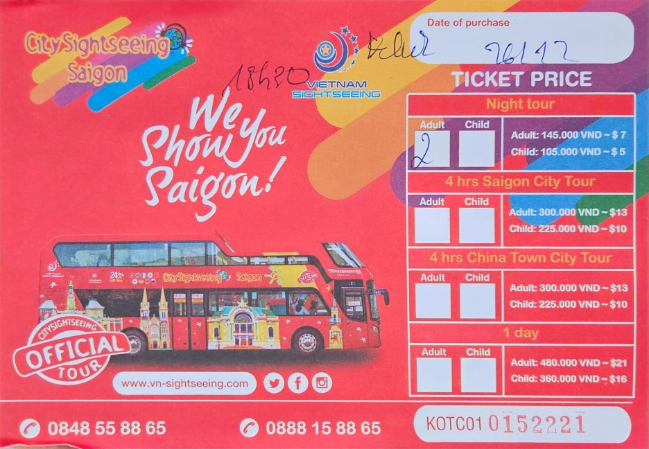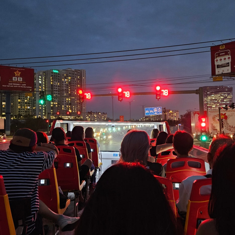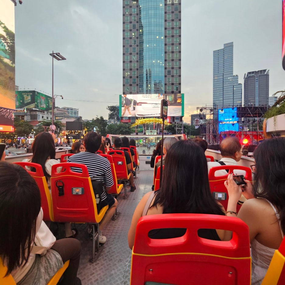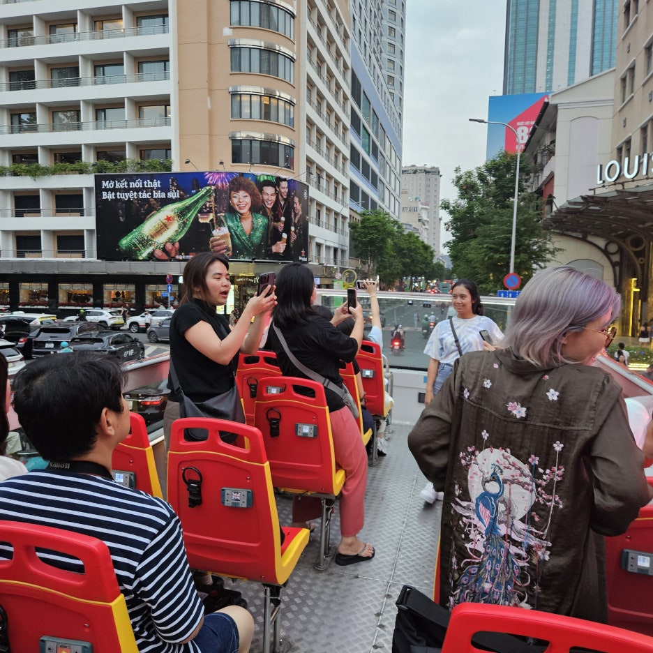 나는 오후 5시 20분에 버스를 탑승했는데, 이때는 대기 줄도 없어 바로 탑승이 가능했다. 또한 이 시간대가 좋은 이유는 해 질 녘에 투어를 시작해서 노을도 감상이 가능하고, 야경도 완벽하게 감상이 가능하다는 것. 12월 중순 경에는 이 시간 5시 20분이 최고의 탑승 시간이었다. 호치민의 일몰시간은 1년간 비슷하게 5시 30부터 6시 20분 사이의 시간이니, 방문 날짜의 일몰시간을 미리 확인해 보고 일정을 정하면 좋을 듯.