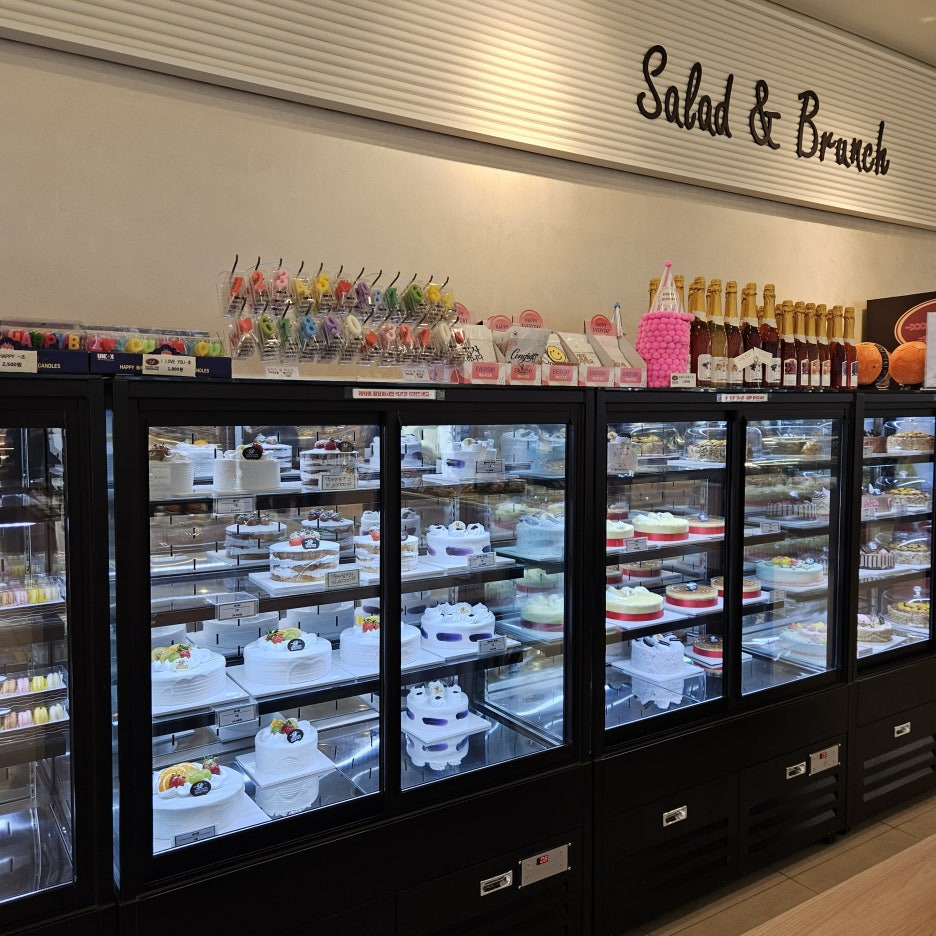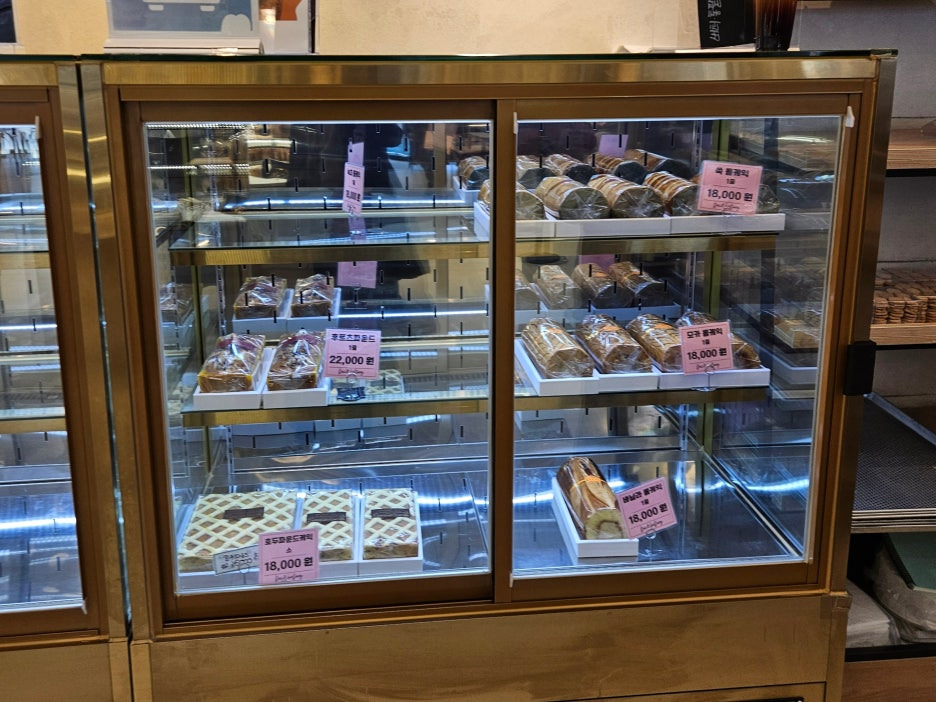 빵뿐만 아니라 다양한 케이크도 대량으로 전시 중.