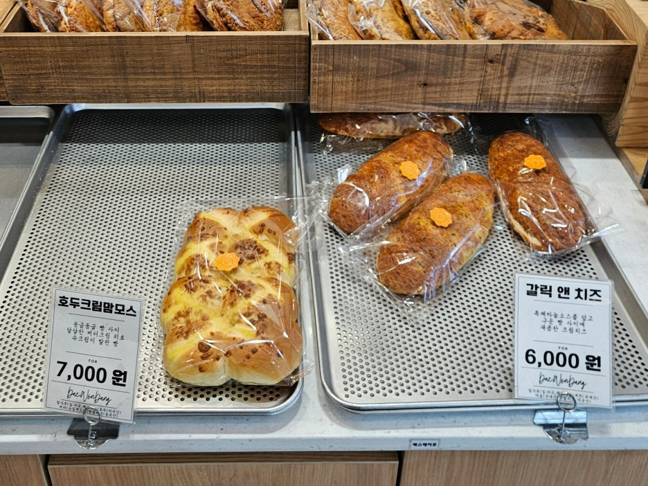 맘모스빵이 유명해서 그런지, 비슷한 크기에 호두 크림 맘모스도 있고, 갈릭 앤 치즈도 있고.
