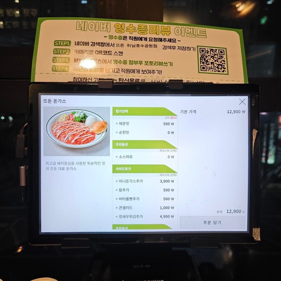각 테이블에 있는 태블릿으로 주문과 결제까지 한 번에 다 되어 편리하다.