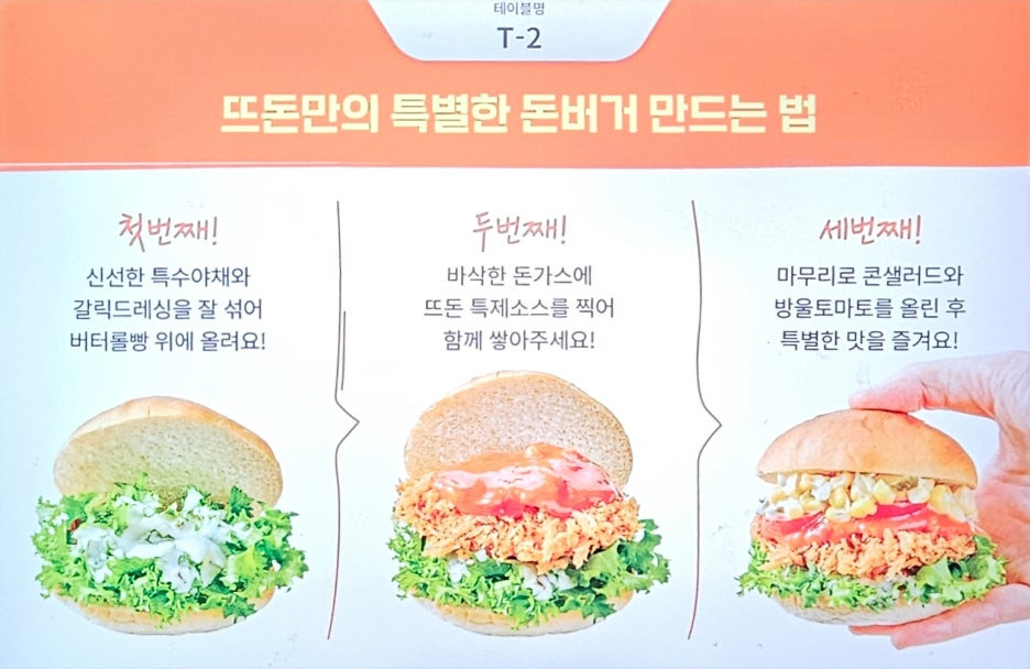 거의 유사한 구성으로 나온 뜨돈 돈가스. 다른 점은 모닝빵 1개와 샐러드가 조금 고급스러워 보인다는 점이 다이다. 대신 2,000원이 비싼 구성. 난 이 정도의 구성이라면 옛날 돈가스가 훨씬 나은 듯.