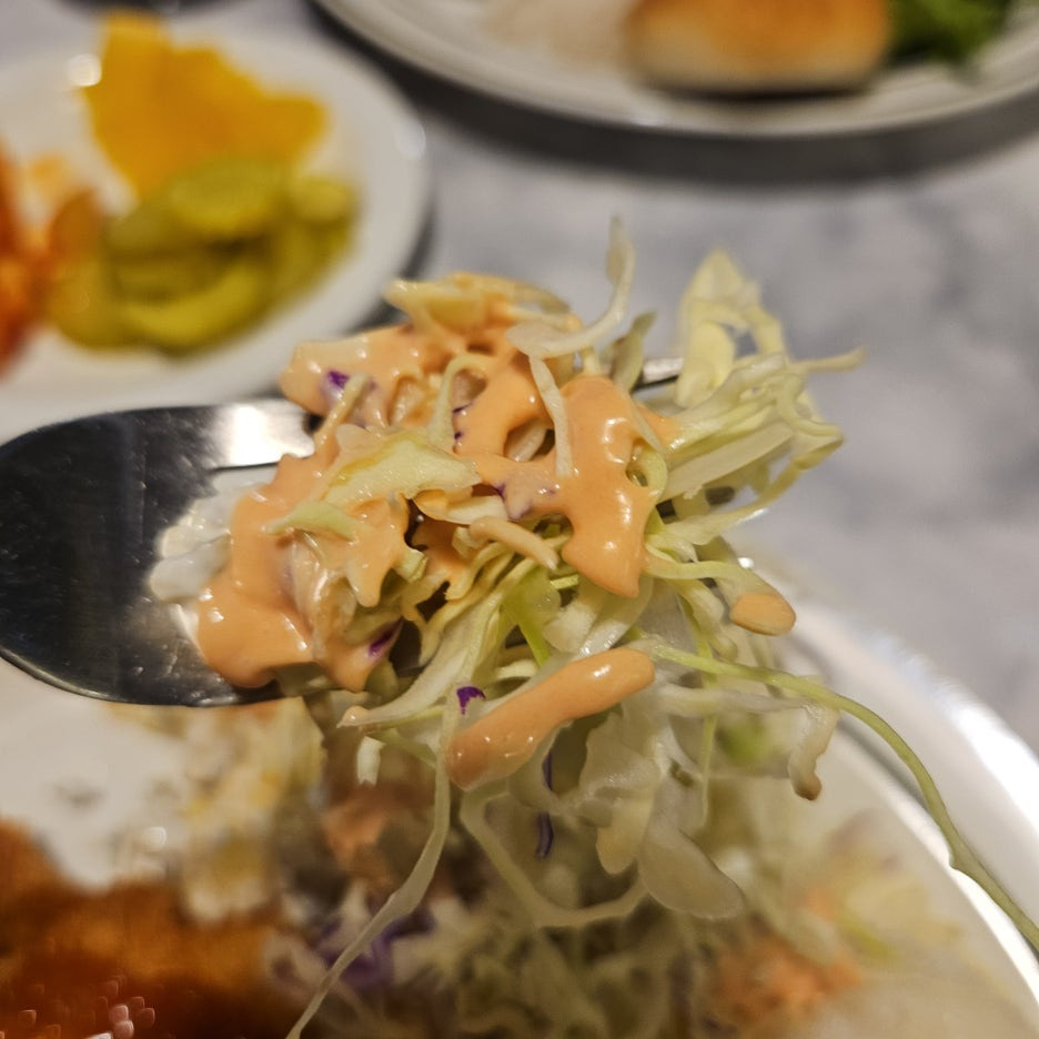 수프도 묽지 않고 걸쭉한 것이, 입맛을 아주 돋워준다. 물론 기성제품을 사용하리라 생각되지만, 오히려 그렇다 보니 제대로 된 경양식 돈가스집의 맛을 보여주는 수프다.