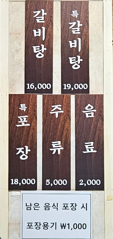 메뉴는 아주 간단하다. 갈비탕 보통과 특. 그리고 포장. 보통 갈비탕에는 갈빗대가 2개, 특에는 3개나 나오니, 추가 갈빗대 1개의 3천 원인 셈. 포장은 특 갈비탕만 가능한데, 가격은 조금 싸지만 갈빗대가 4대가 들어가 있다. 하지만, 반찬이나 밥이 없다는 점.