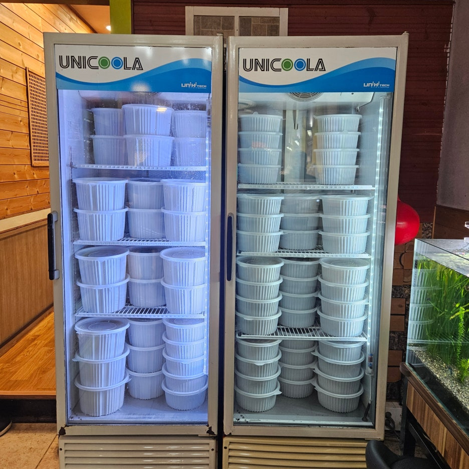 나오면서 계산대 옆을 보니, 큰 냉장고 안에 포장용 갈비탕이 엄청나게 준비되어 있다. 우리도 1인분을 포장해왔고, 며칠 후 저녁으로 두 명이 배부르게 잘 먹을 수 있었다.