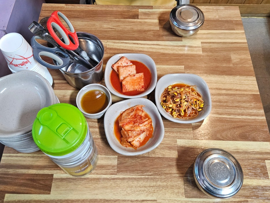 추가 반찬은 셀프로 이곳에서 가져다 먹으면 된다. 김치, 깍두기, 콩나물 무침 세 가지 종류.