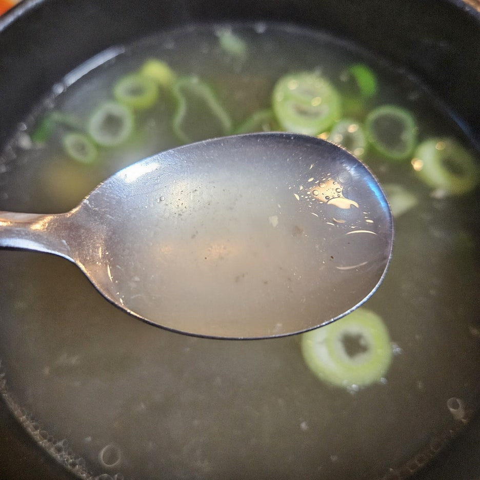 밥을 넣기 전의 국물은 아주 맑고 시원하다. 따로 간을 할 필요 없는 아주 딱 알맞은 감칠맛.