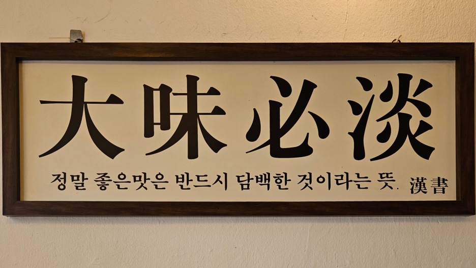 가게 벽면에 걸린 "대미필담" 이라는 문구는 평양냉면의 정체성을 한마디로 보여준다.