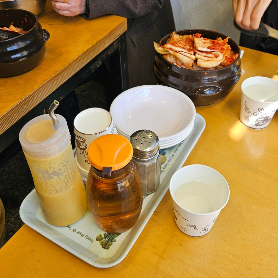 3월 초라 날씨가 쌀쌀해 한산할 줄 알았는데, 오후 12시 30분 피크 타임에 도착하니 역시나 대기가 있었다. 다행히 5분 정도 짧게 대기하고 입장했지만, 우리 뒤로 줄이 금세 길어졌다. 내부는 한 층의 아담한 공간이라 늘 붐빈다. 방송과 유튜브에 소개되면서 더욱 핫해진 느낌이다.
