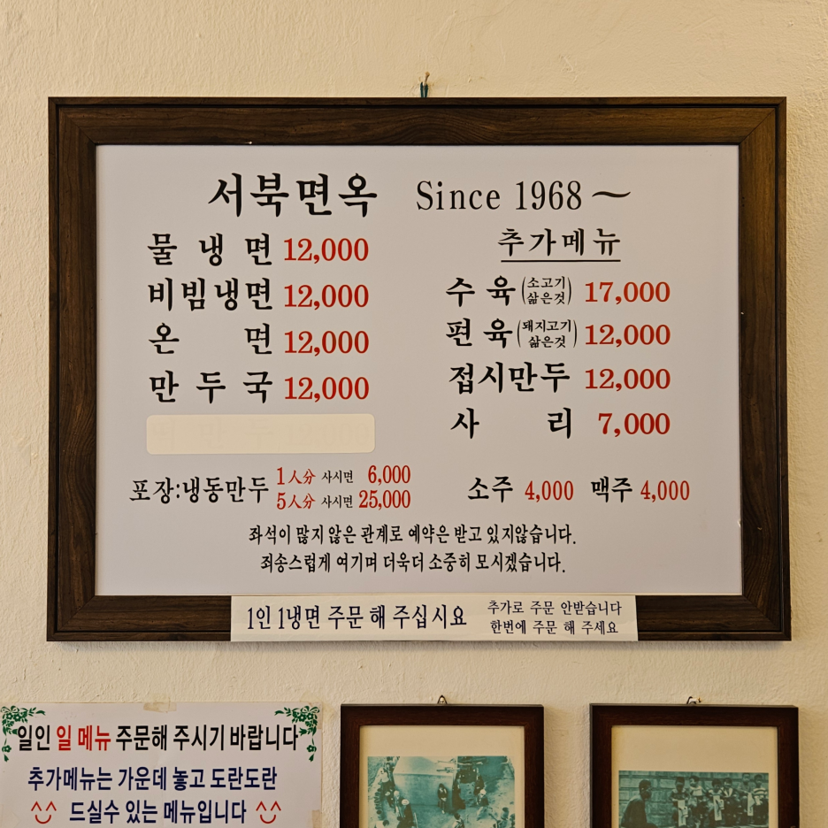 나에게 평양냉면의 참맛을 일깨워준 '평양냉면 스승님', 바로 서북면옥에 오랜만에 다녀왔다. 여전히 훌륭한 맛을 유지하고 있어 반가웠지만, 가성비의 대명사였던 이곳도 어느덧 1만 2천 원 시대가 됐다. 서북면옥은 나에게 특별한 의미가 있는 곳이다. 22년 전 무더운 여름, 우연히 들러 처음 평양냉면을 접했을 땐 "이게 무슨 맛이지?" 싶었다. 하지만 신기하게도 일주일 만에 그 맛이 강렬하게 생각나 아내를 데리고 다시 찾았던 기억이 난다. 1년 만에 다시 찾은 이곳은 여전히 입구부터 설레게 한다.