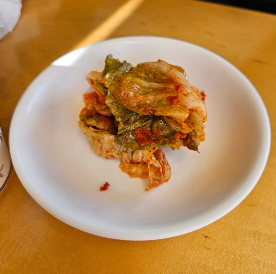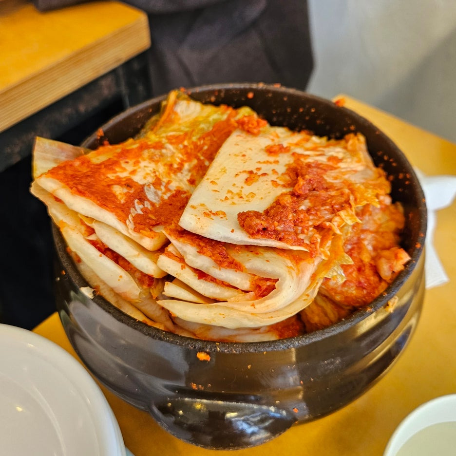 김치는 항상 놓여 있다. 만두나 수육, 편육과 먹기에 잘 어울린다. 하절기에는 열무김치로도 바뀐다. 맛을 보면 직접 담그는 김치라 생각이 든다. 상쾌한 맛이 좋은 김치.