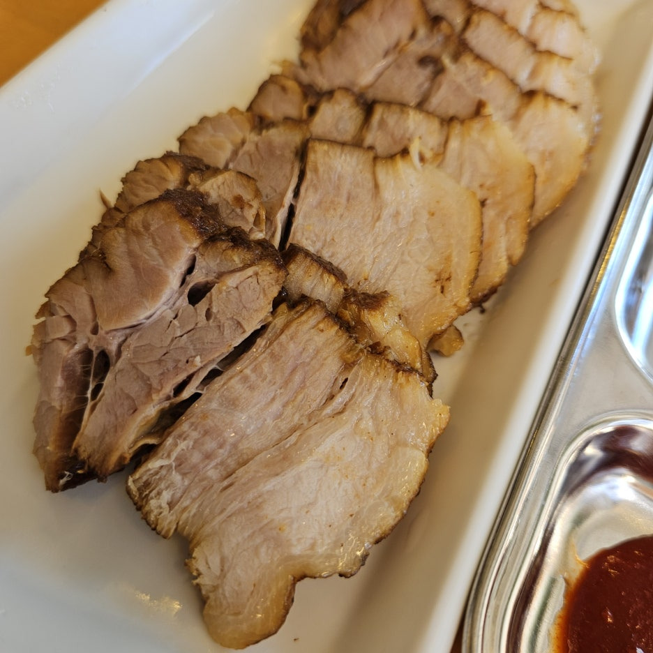 오늘은 실패한 편육. 맛은 나쁘지 않았지만 좀 퍽퍽하게 질긴 식감이었다.
