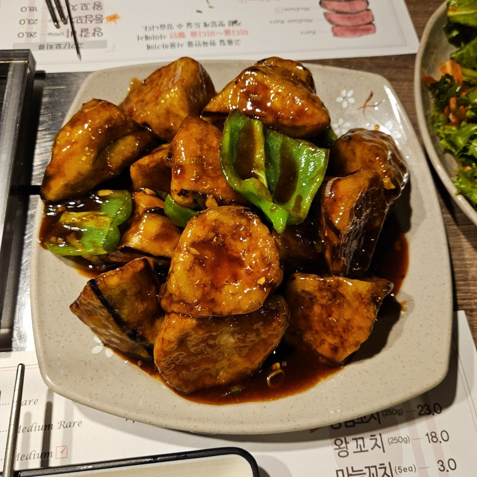 겉은 살짝 바삭, 속은 가지의 부드러운 식감을 그대로 느낄 수 있다. 소스와의 조화가 너무 훌륭. 지금도 생각나는 맛.