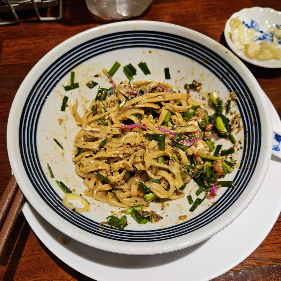 통통한 중면에 잘 붙은 양념이 아주 훌륭하다. 맛 대체로 만으로는 멘야하나비의 맛에 버금가는 훌륭한 맛. 최근에 몇 군데에서 마제 소바를 먹어봤지만 여기 미사리 제면소에서 가장 맛있게 먹었다.