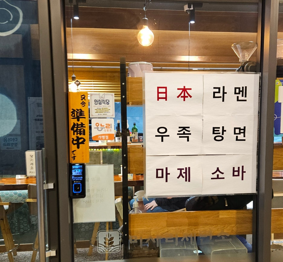 11시 30분에 딱 맞춰 갔더니, 문 옆의 푯말에는 준비 중이라 되어 있었다(일본의 한자 푯말이라 까먹고 안 돌려놓으신 것일지도). 하지만, 안쪽을 보니 이미 손님들이 들어가 있는 상태였기에 우리도 입장.
