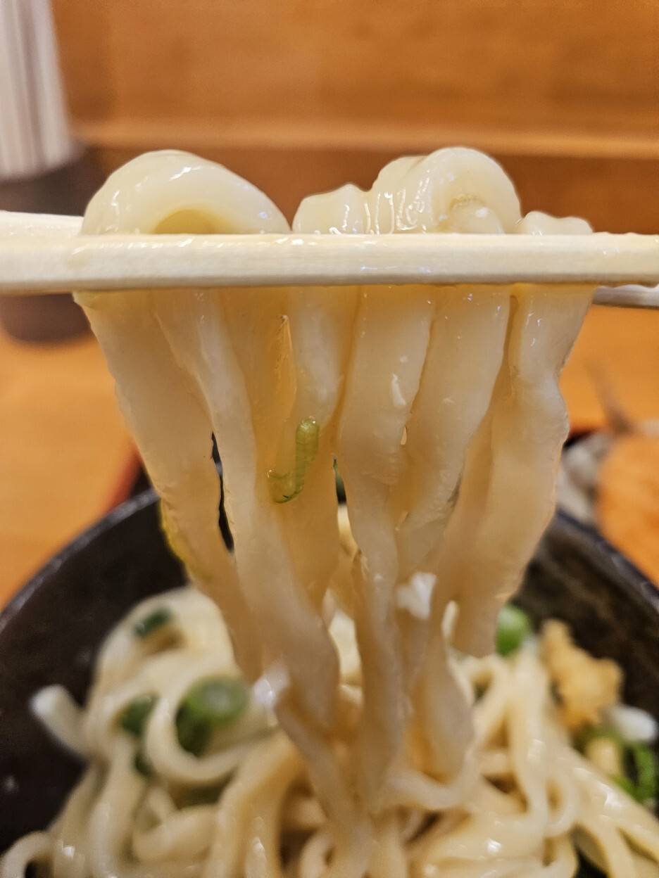 이제 정갱이 튀김과 면을 함께 잘 먹어준다. 가마타마 우동도 소자였는데, 양이 은근히 많다. 대자는 1개의 면 다발이 추가되는데 소자의 두 배의 양은 배가 너무 많이 부를 것 같다.